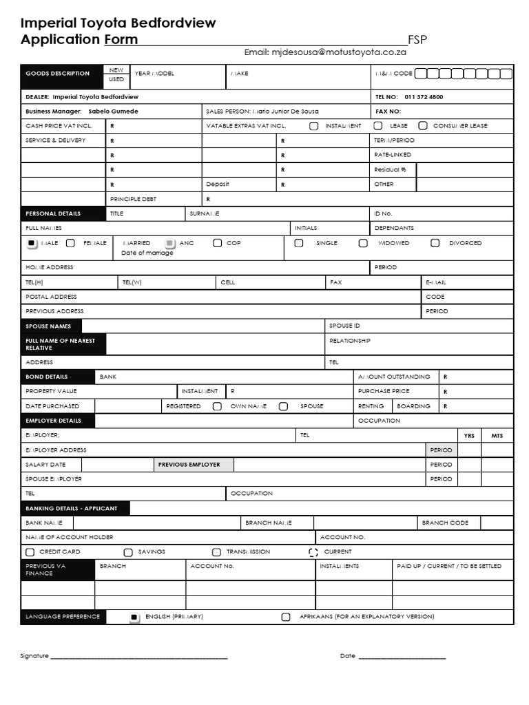DEALER: Imperial Toyota Bedfordview TEL NO: 011 372 4800