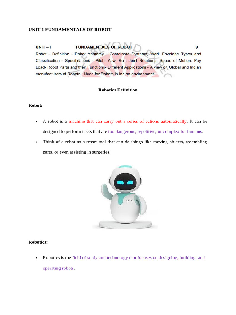 UNIT 1 FUNDAMENTALS OF ROBOT