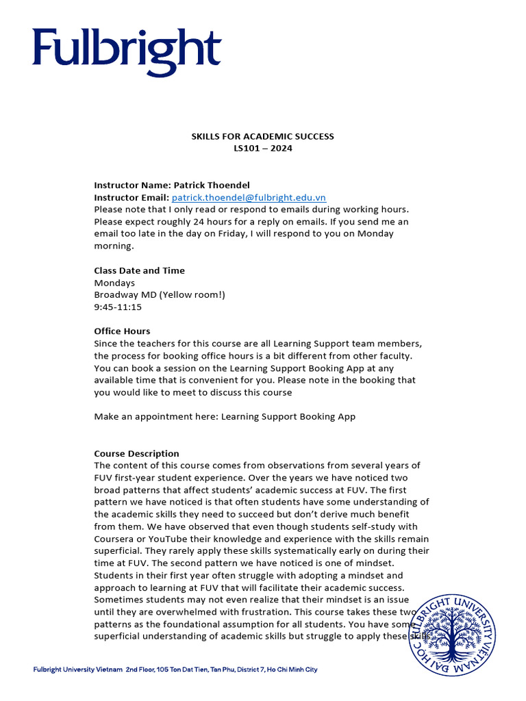 Instructor Email: patrick.thoendel@fulbright.edu.vn