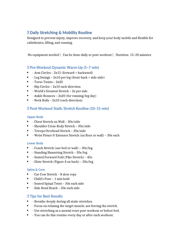 No equipment needed | 👌 Can be done daily or post-workout | ⏱️Duration: 15–20 minutes