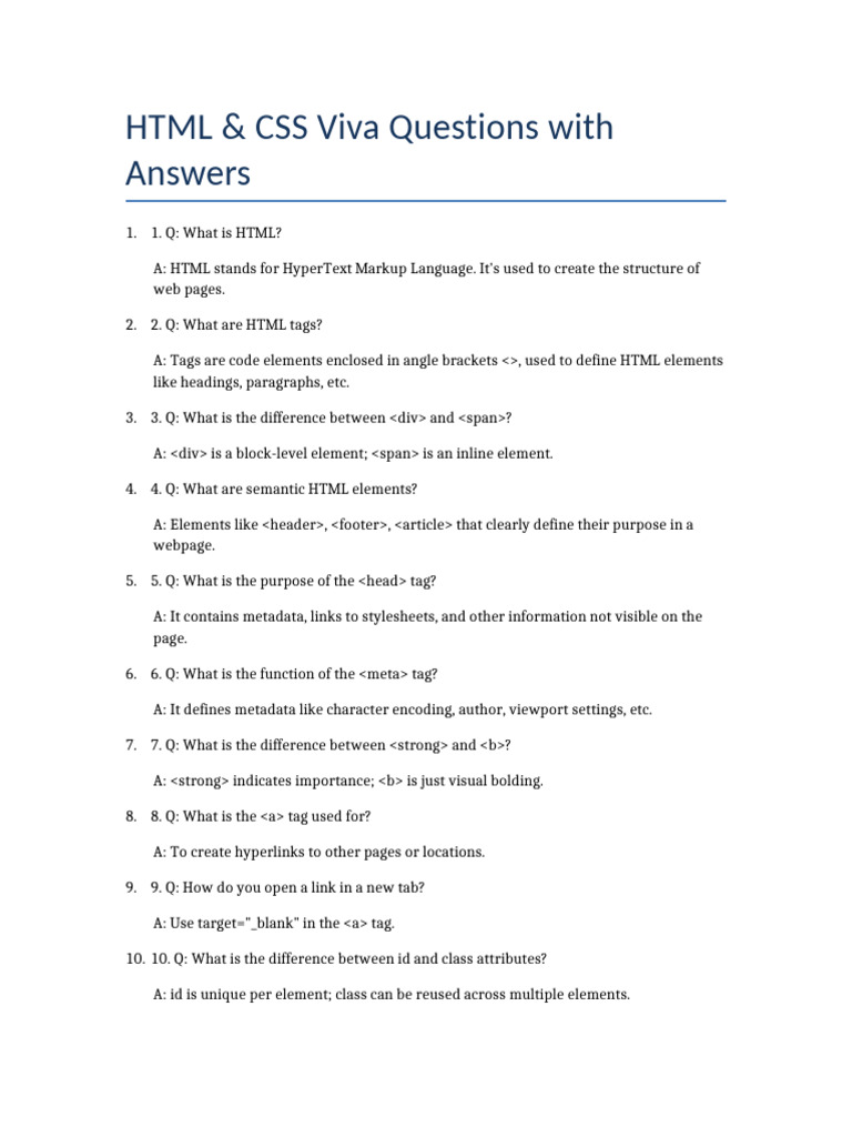 24. 24. Q: What is the difference between class and id selectors in CSS?