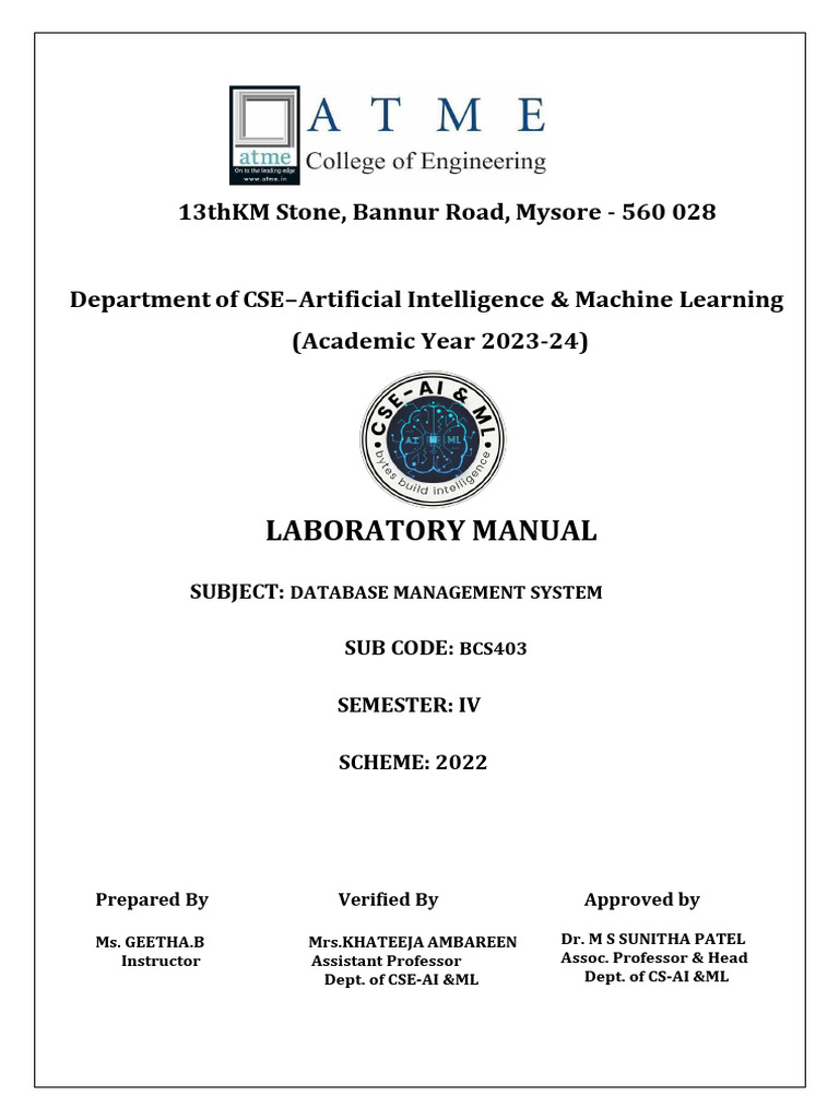 SUBJECT: DATABASE MANAGEMENT SYSTEM