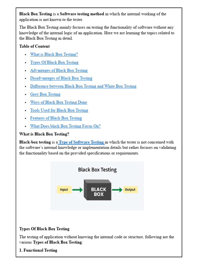 the Black Box Testing in detail.