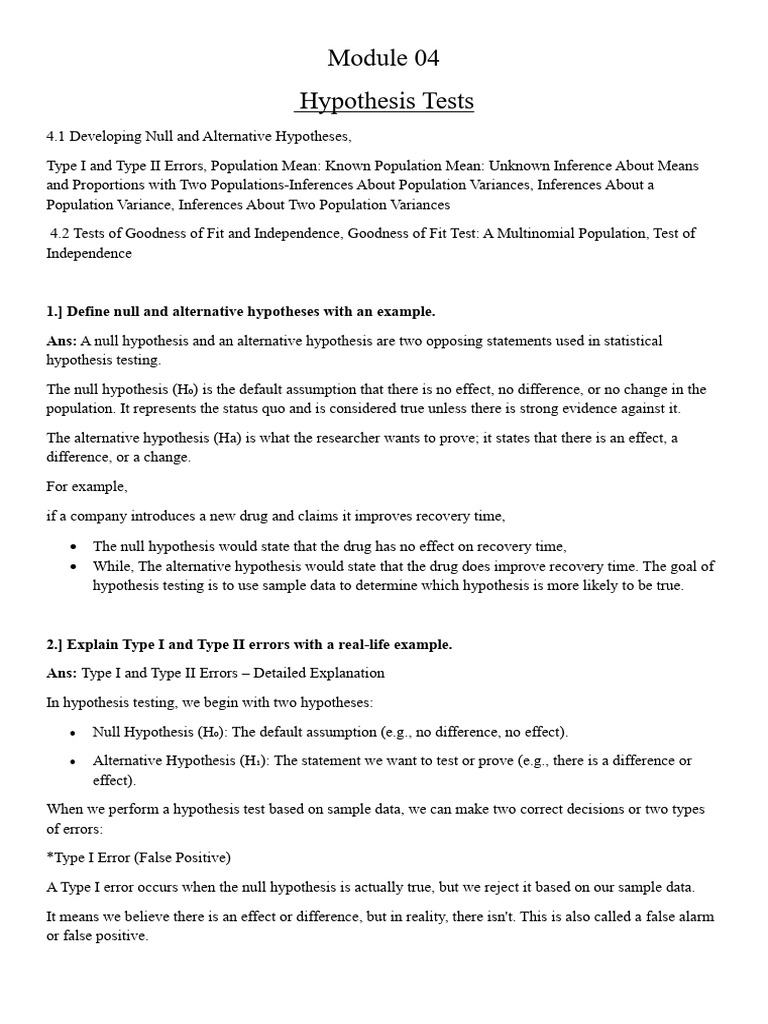 Ans: A null hypothesis and an alternative hypothesis are two opposing statements used in statistical