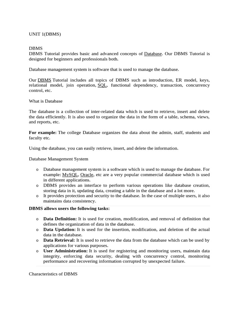 DBMS Tutorial provides basic and advanced concepts of Database. Our DBMS Tutorial is