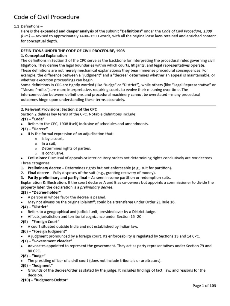 Here is the expanded and deeper analysis of the subunit "Definitions" under the Code of Civil Procedure, 1908