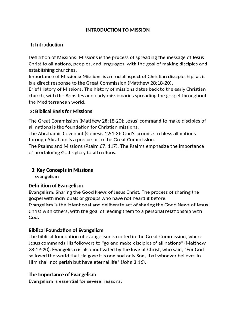 Brief History of Missions: The history of missions dates back to the early Christian