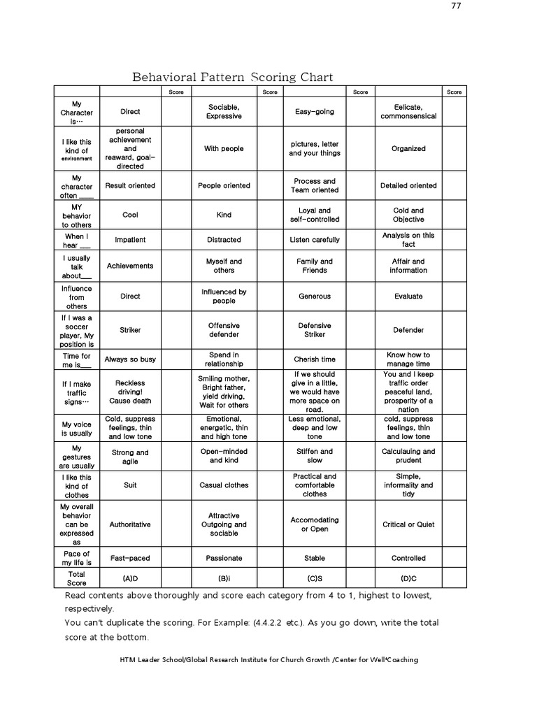 D/I Result Oriented I/S/D Devoted S/C/I Pacifist