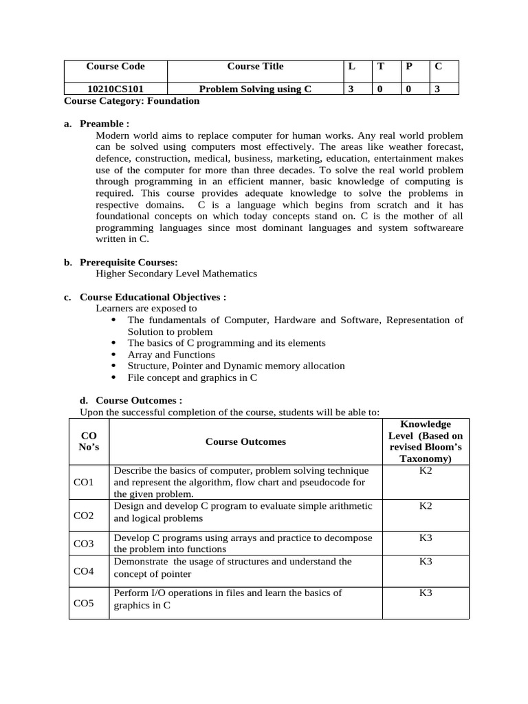 10210CS301 Problem Solving using C Lab 0 0 2 1