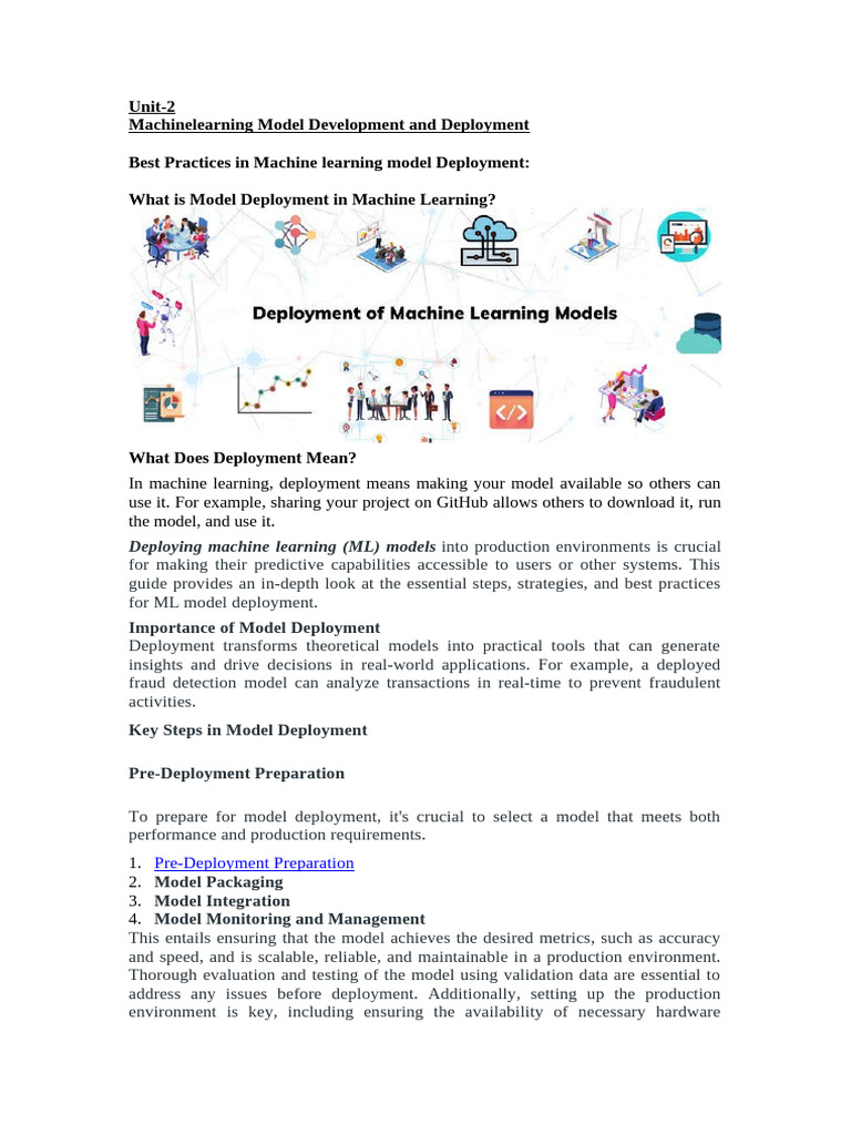 Best Practices in Machine learning model Deployment: