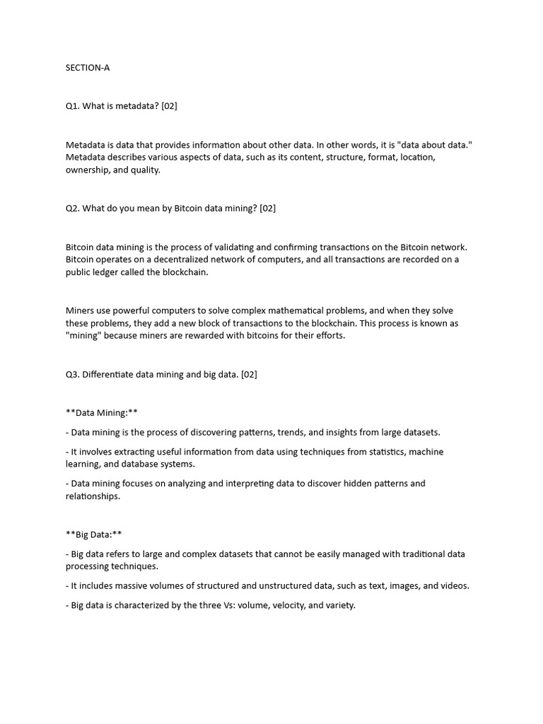 Q2. What do you mean by Bitcoin data mining? [02]