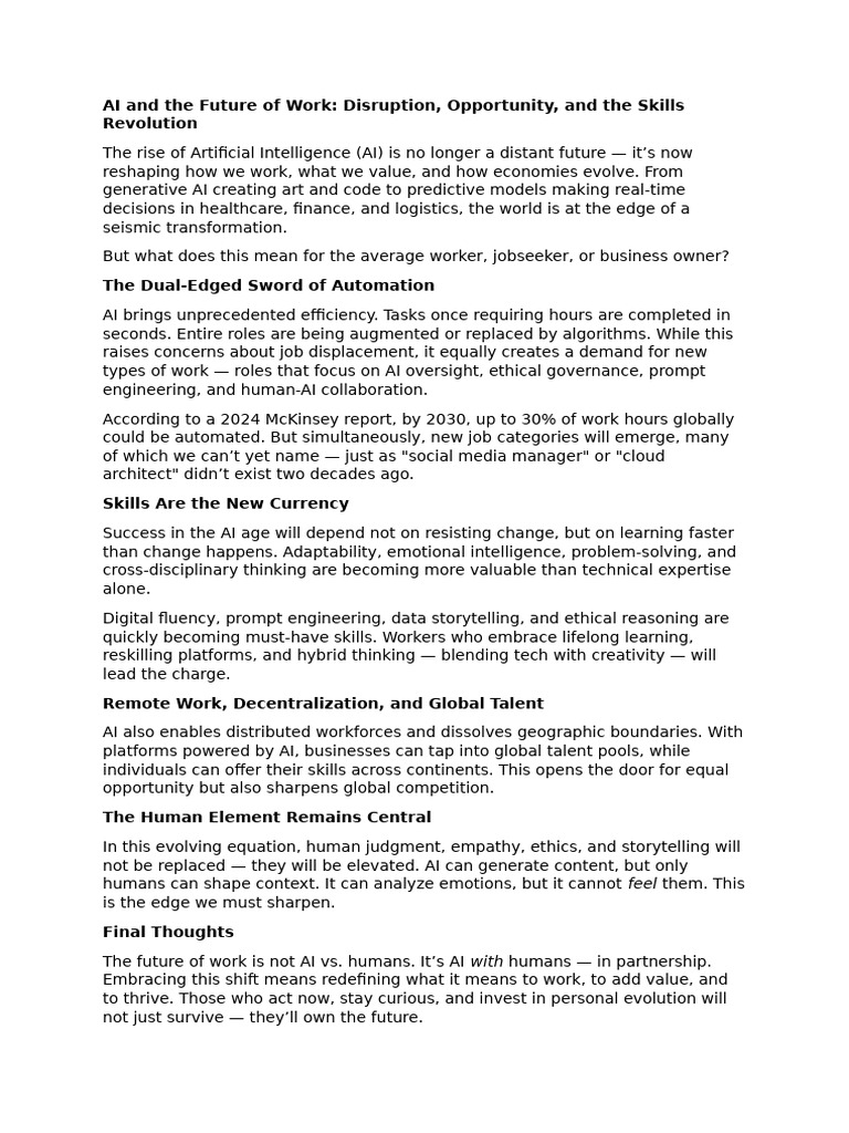 AI and the Future of Work: Disruption, Opportunity, and the Skills