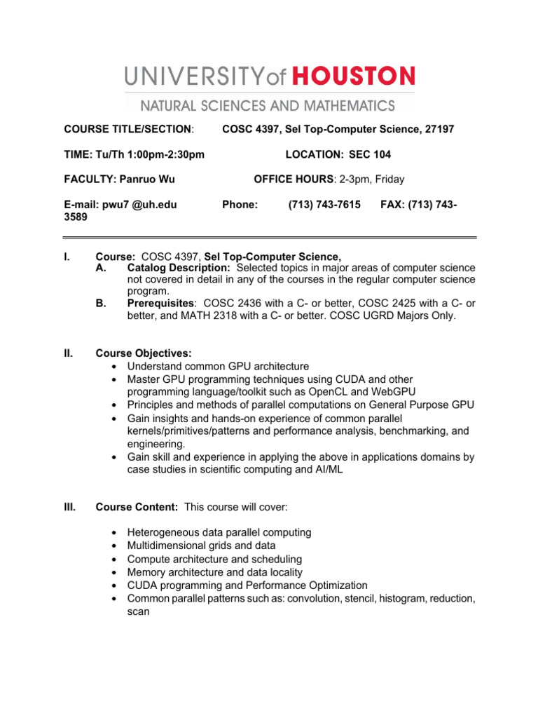 I. Course: COSC 4397, Sel Top-Computer Science,