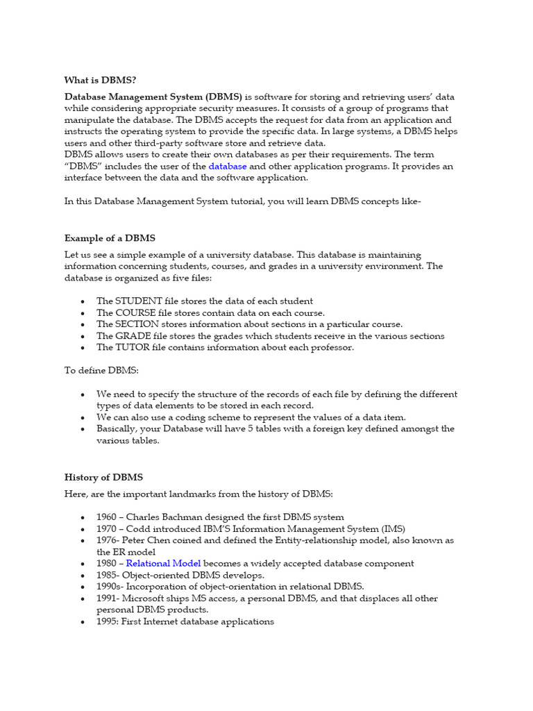 In this Database Management System tutorial, you will learn DBMS concepts like-