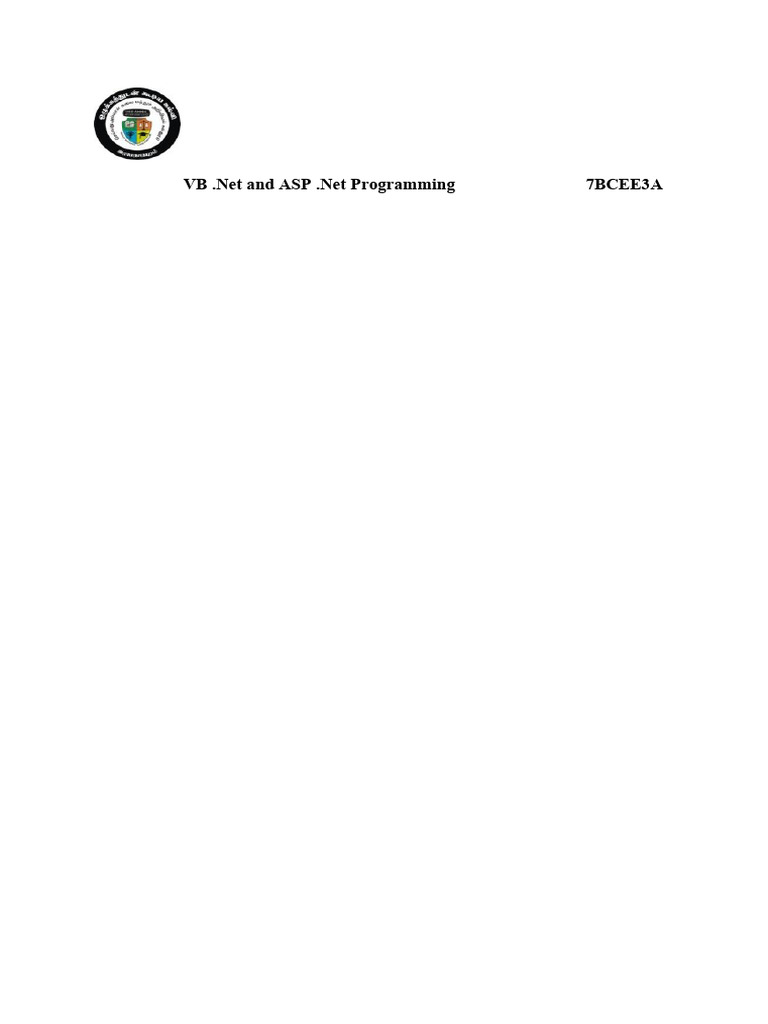 SUB NAME: VB .Net and ASP .Net Programming SUB CODE: 7BCEE3A