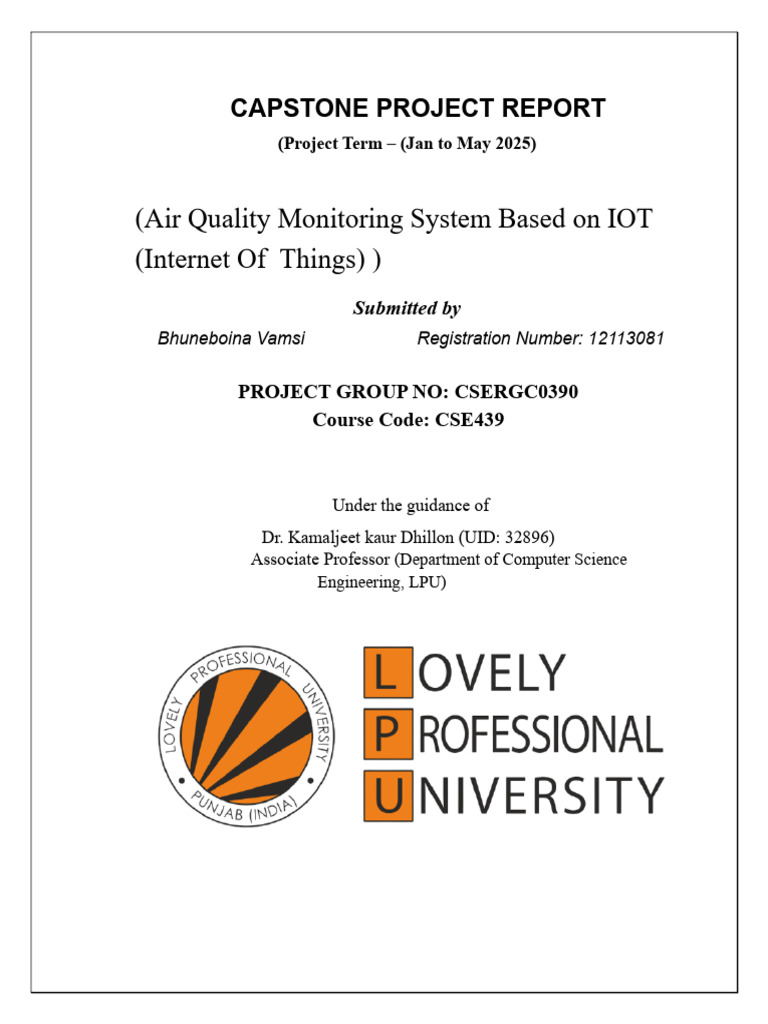 We hereby declare that the project work entitled “IoT and Cloud Based Air