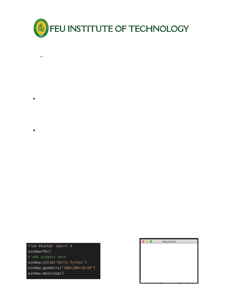 GUI elements and their functionality are defined in the Tkinter module. The following