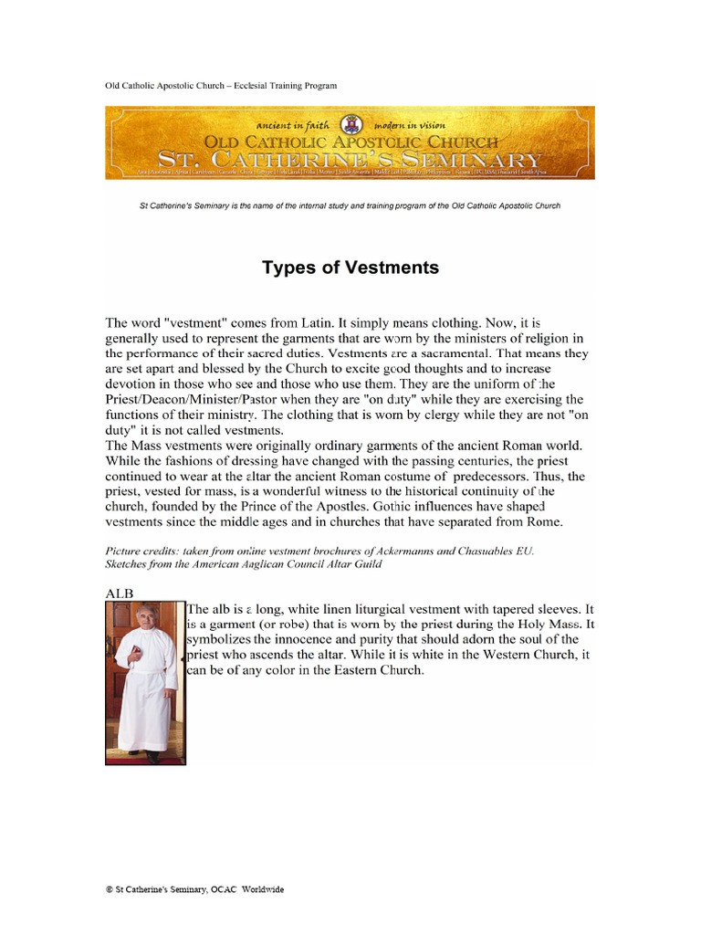 The description of historic or other vestments that are not used in OCAC is below: