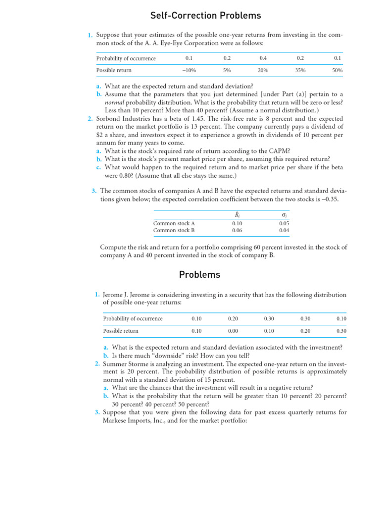 1. Suppose that your estimates of the possible one-year returns from investing in the com-