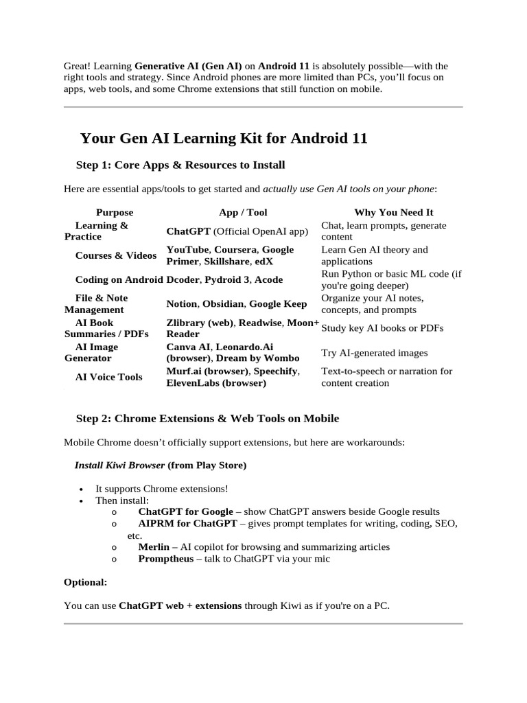 Learning Generative AI (Gen AI) on Android 11 is absolutely possible—with the