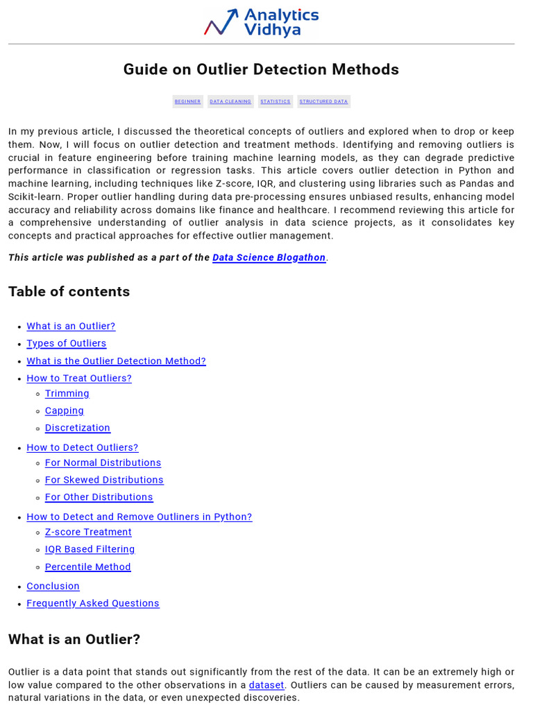 performance in classification or regression tasks. This article covers outlier detection in Python and