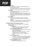 Consider: Outlier definition, impact, handling (remove, cap, transform).