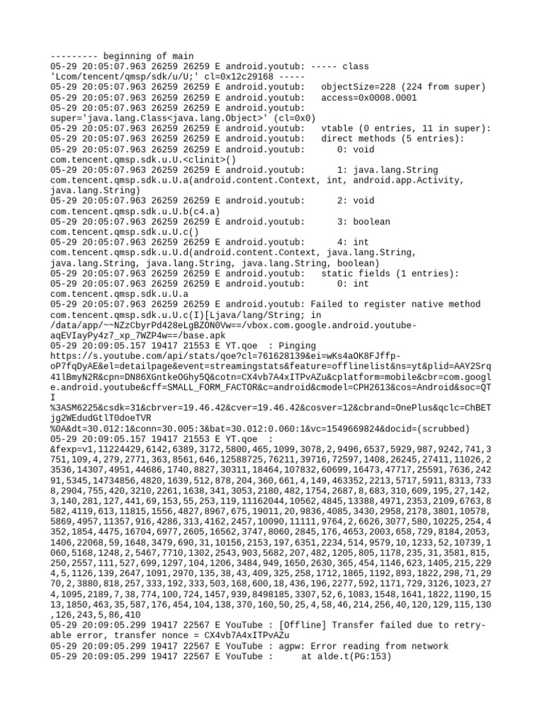 05-29 20:09:05.299 19417 22567 E YouTube : at bre.a(PG:10)