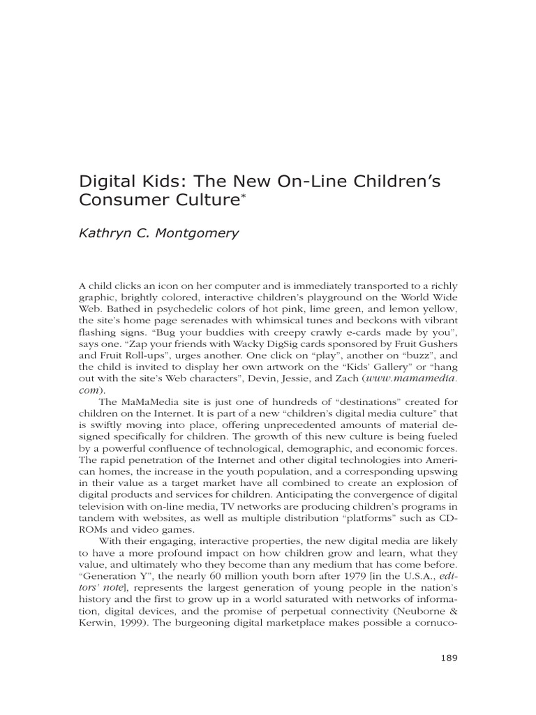 Digital Kids: The New On-Line Childrens Consumer Culture