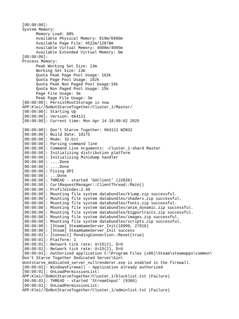 [00:00:00]: Don't Starve Together: 664111 WIN32
