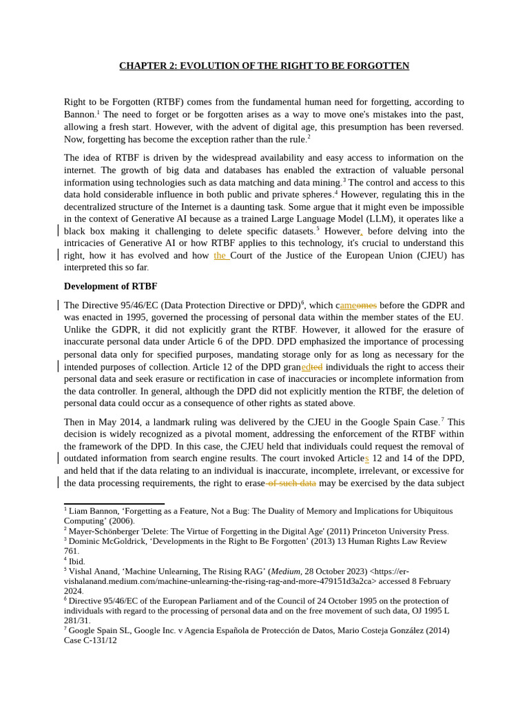 CHAPTER 2: EVOLUTION OF THE RIGHT TO BE FORGOTTEN