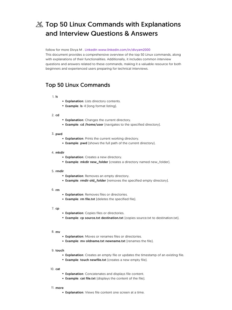 Linux commands follow for more Divya M . LinkedIn www.linkedin.com/in/divyam2000