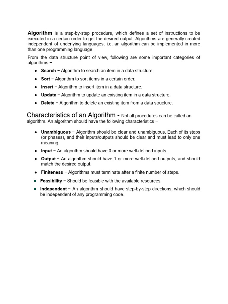● Unambiguous − Algorithm should be clear and unambiguous. Each of its steps