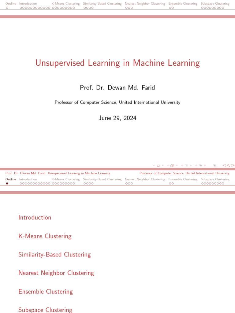 Prof. Dr. Dewan Md. Farid: Unsupervised Learning in Machine Learning Professor of Computer Science, United International University