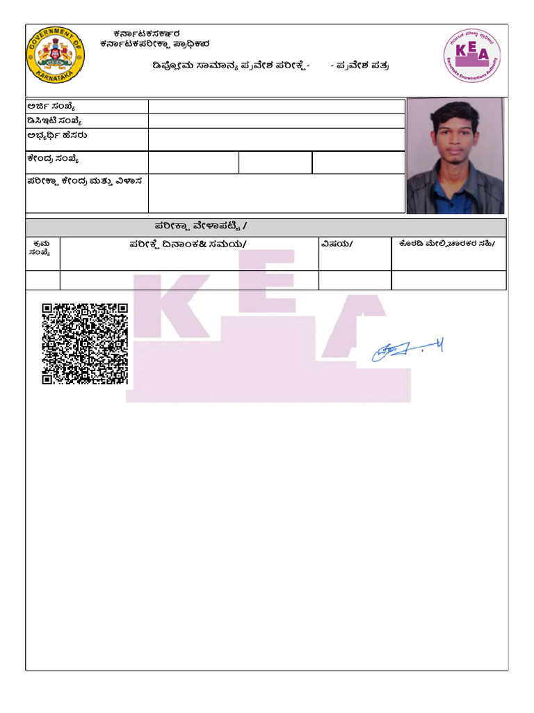 Year Diploma Exam. Admission Ticket, compulsorily. vÉUÉzÀÄPÉÆAqÀÄ ºÉÆÃUÀ¨ÉÃPÀÄ.