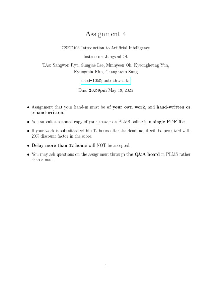 • You may ask questions on the assignment through the Q&A board in PLMS rather