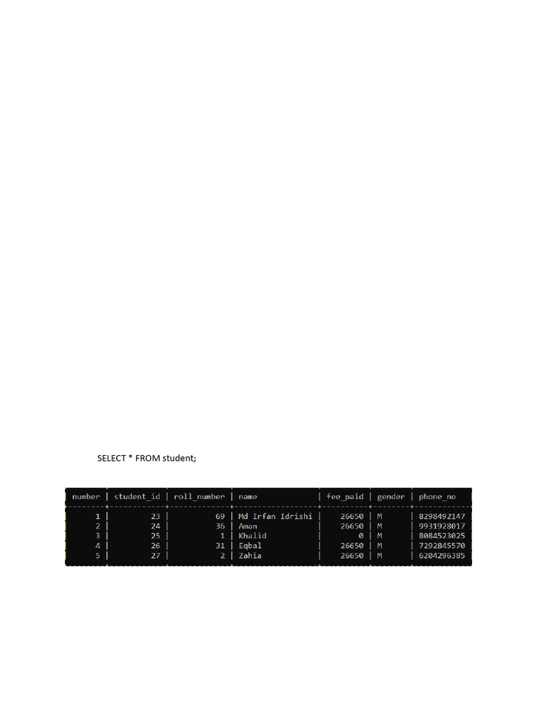 INSERT INTO student (number, student_id, roll_number, name, fee_paid, gender, phone_no)