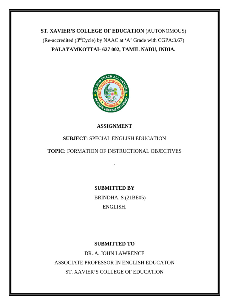 XAVIER’S COLLEGE OF EDUCATION (AUTONOMOUS)