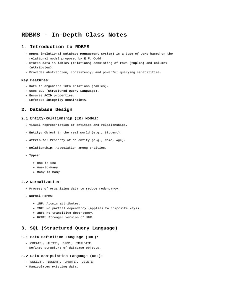 RDBMS - In-Depth Class Notes