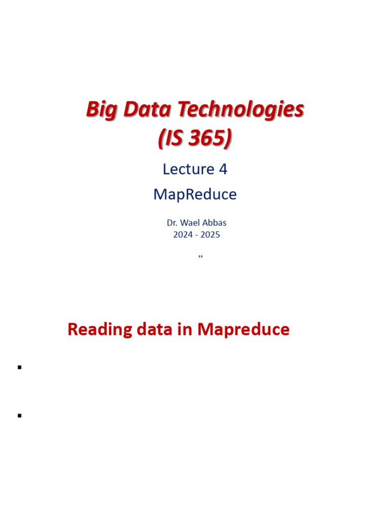 All slides in this file from the following book :”Tom white (2015) .Hadoop: The Definitive