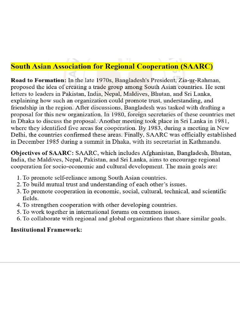 Objectives of SAARC: SAARC, which includes Afghanistan, Bangladesh, Bhutan,