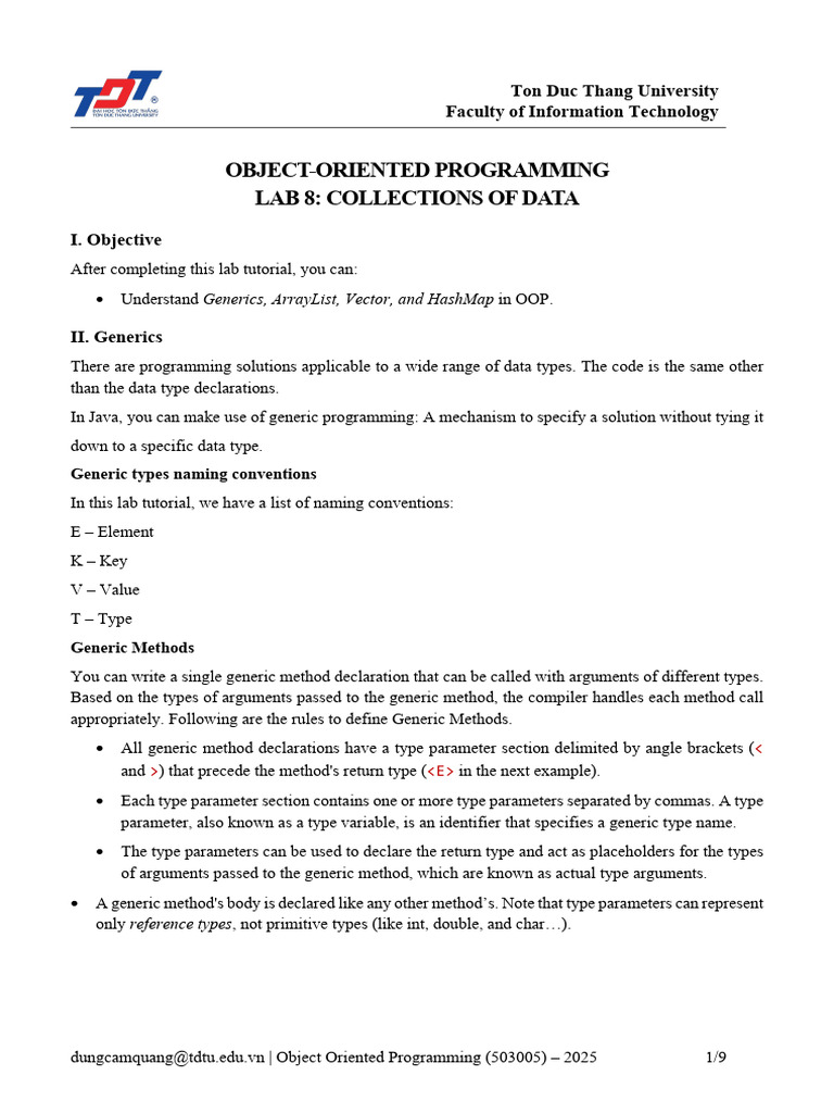 dungcamquang@tdtu.edu.vn | Object Oriented Programming (503005) – 2025 1/9
