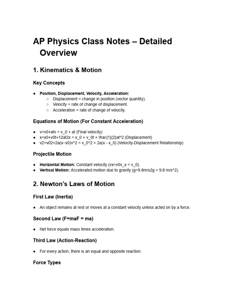 ● Friction: Ff=μNF_f = \mu N (Static vs. kinetic friction).