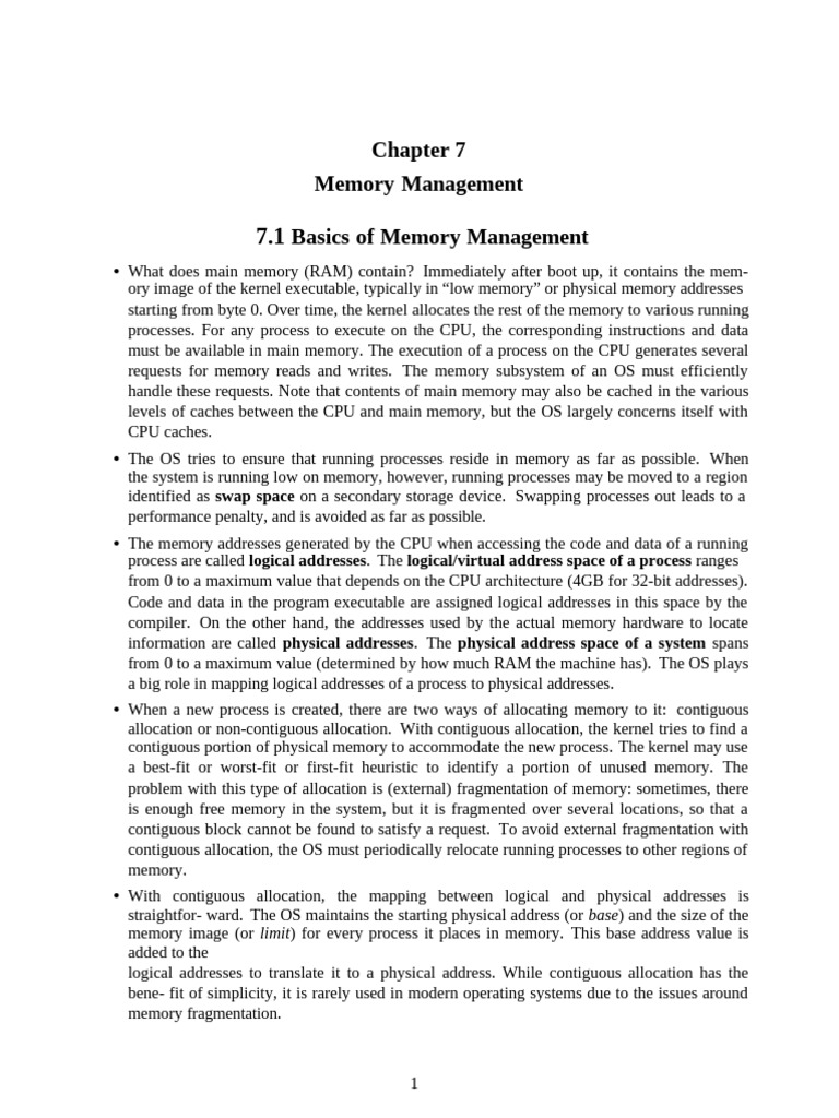 memory or the memory of another process). With contiguous memory allocation, it is easy