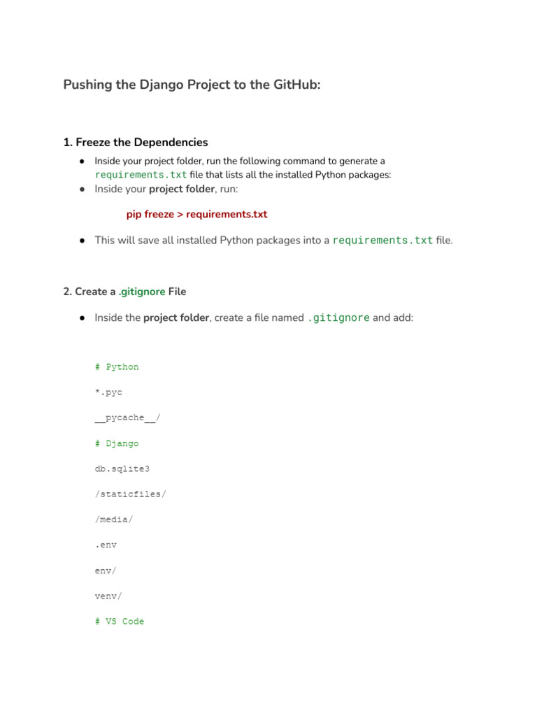 Note: before pushing the Django project to GitHub, configure your name and email to the
