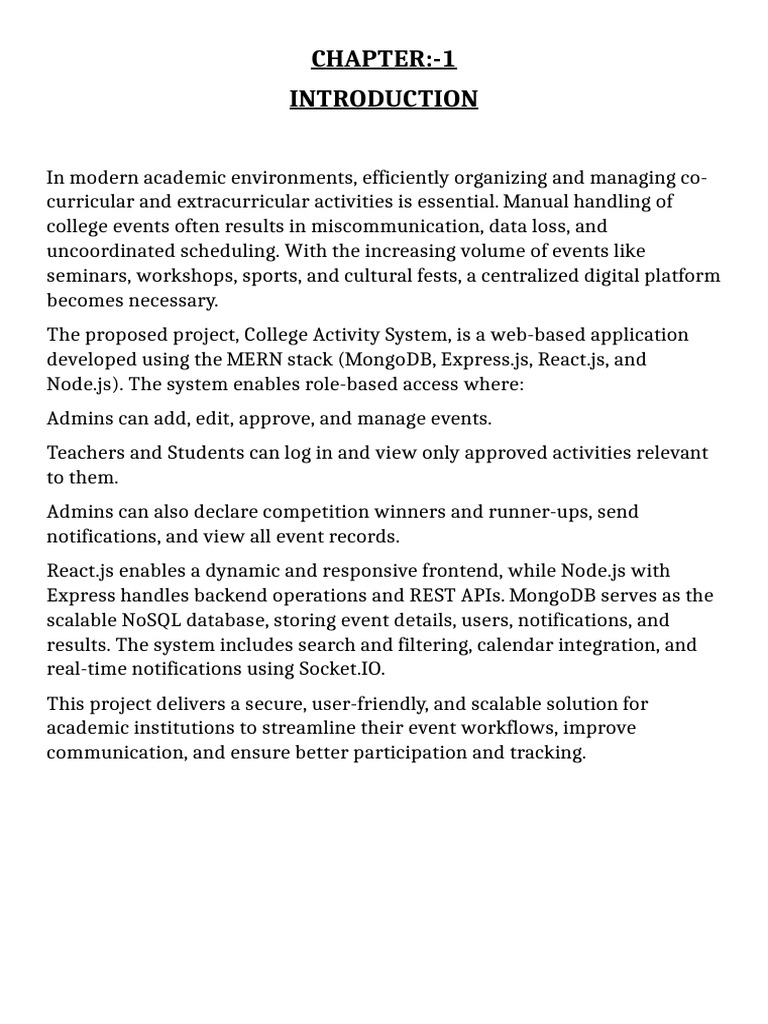 The proposed project, College Activity System, is a web-based application