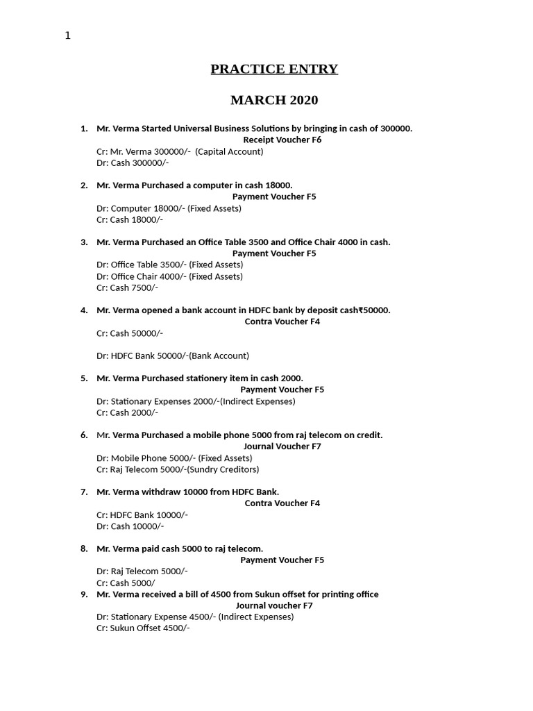 1. Mr. Verma received Rs.30000 in cash as consulting revenue from Eye Television Network.