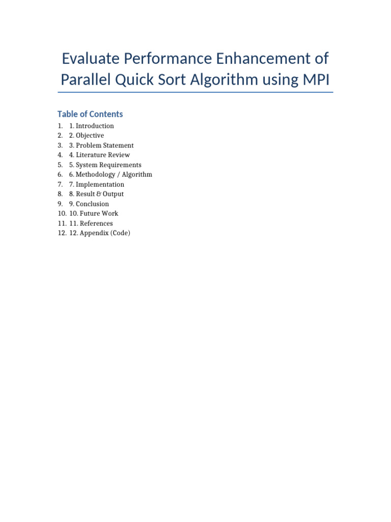 (MPI) to parallelize the Quick Sort algorithm. MPI is chosen for its ability to manage