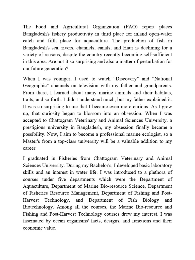 I graduated in Fisheries from Chattogram Veterinary and Animal