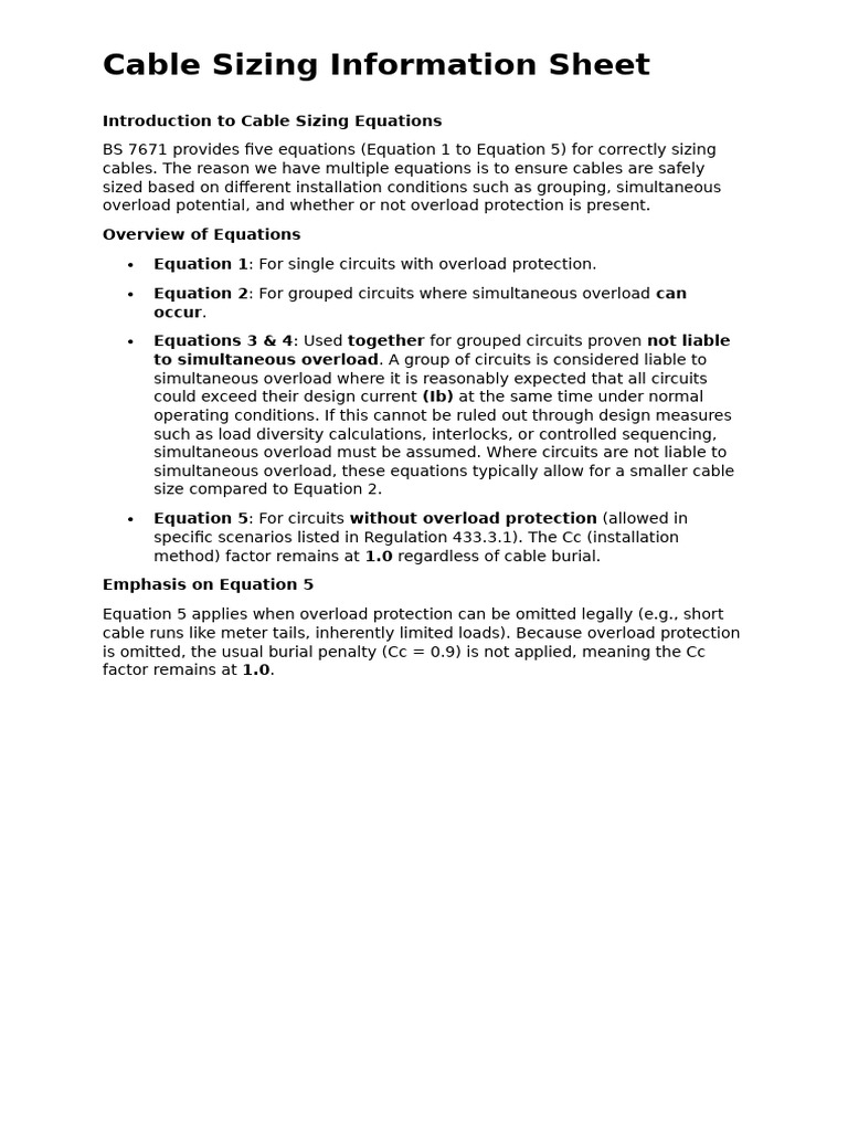 BS 7671 provides five equations (Equation 1 to Equation 5) for correctly sizing