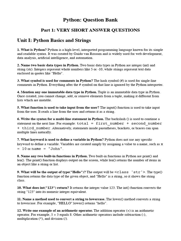 8. Name any two built-in functions in Python. Two built-in functions in Python are print() and